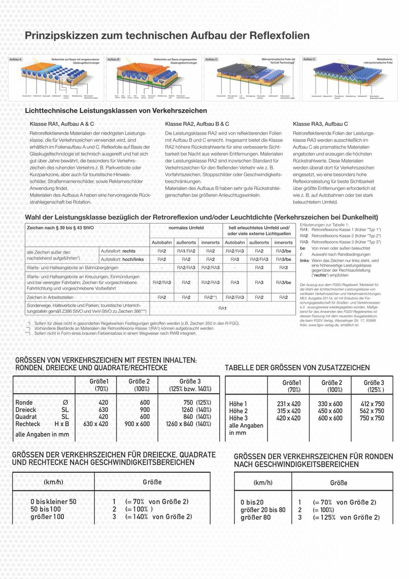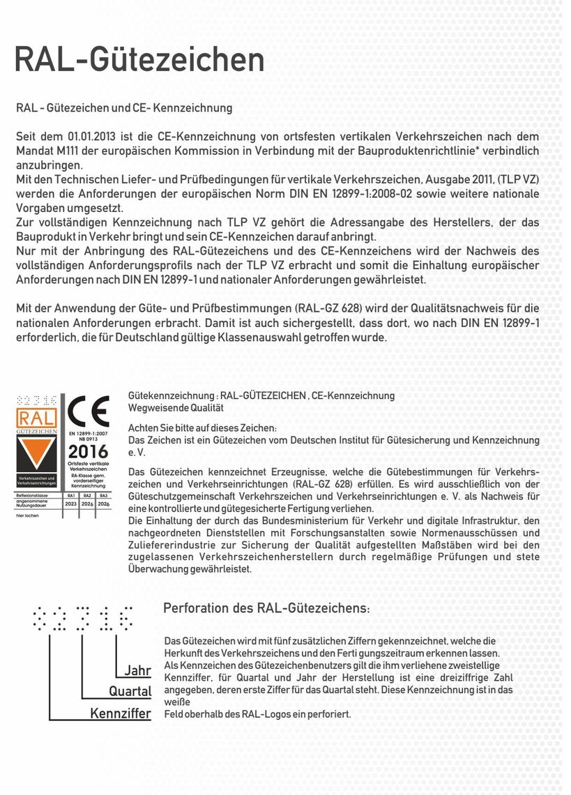 Erfahren Sie mehr über das RAL – Gütezeichen, den Bauarten sowie Folienarten & Schildergrößen: